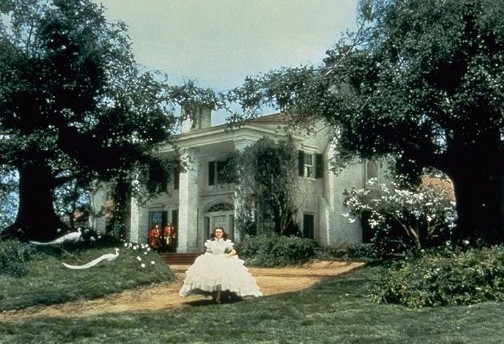 Clark Gable as Rhett Butler and Vivien Leigh as Scarlet O'Hara walking outside Tara in Gone with the Wind movieloversreviews.filminspector.com